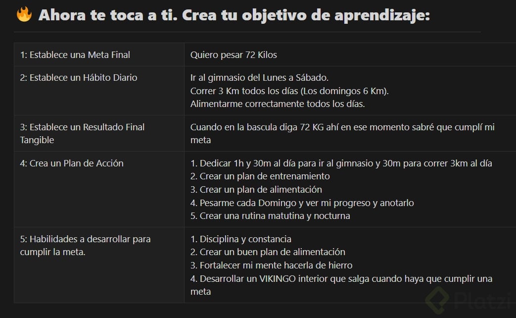 - Hábito diario: Establece una rutina diaria que apoye tu meta.