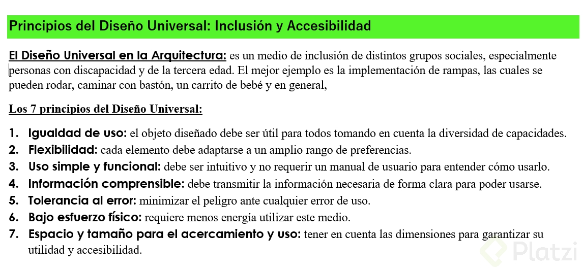 Los principios del Diseño Universal hoy se aplican en los procesos educativos. En la siguiente clase profundizaremos en esto.