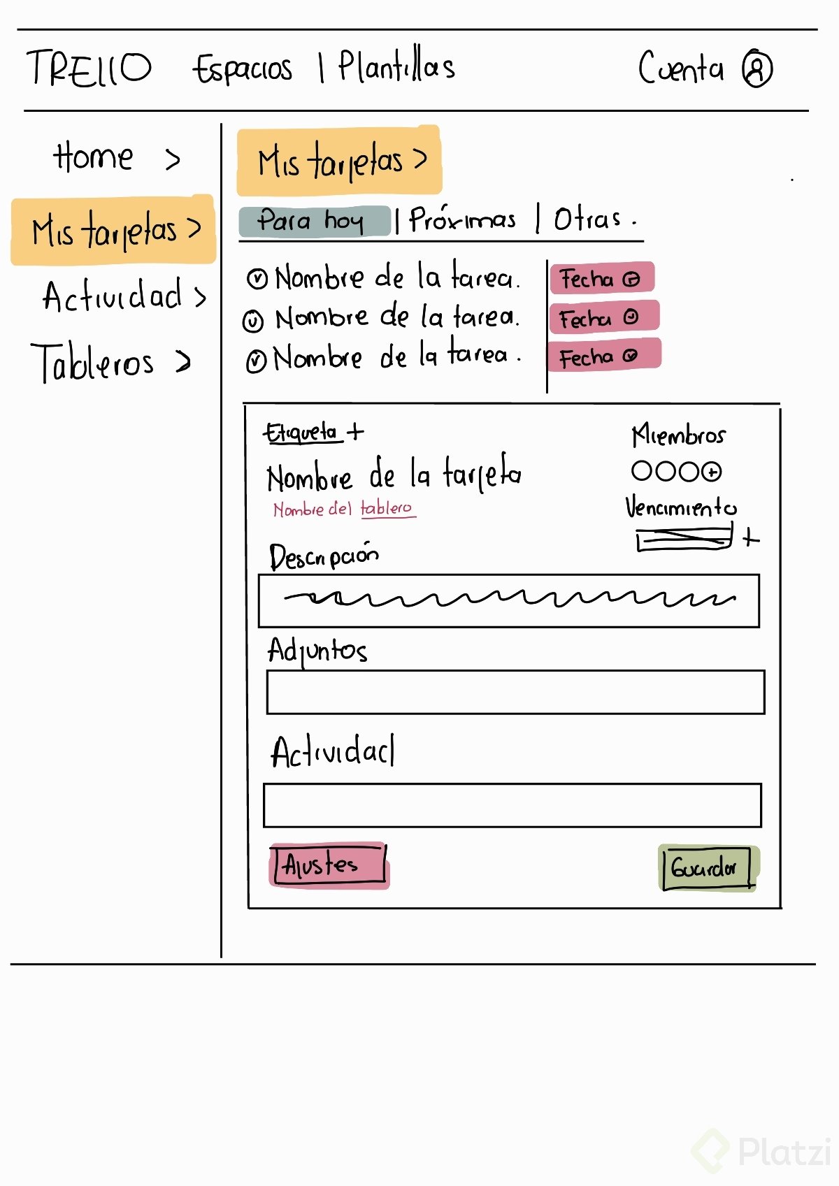 Escogeremos una pantalla que tenga importancia dentro del sitio y haremos una lista con todos los elementos que contiene, a continuación le daremos prioridad a cada uno de estos elementos para después empezar a bosquejar el wireframe de la pantalla aplicando todos los conceptos que hemos aprendido hasta este punto.