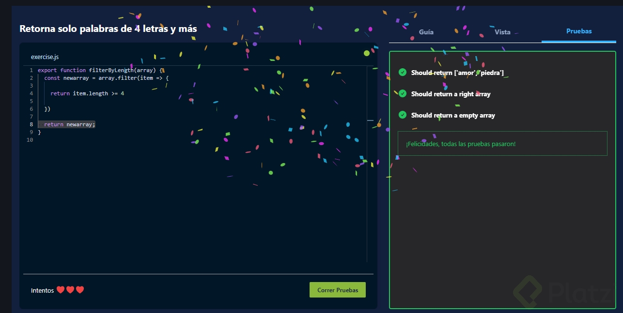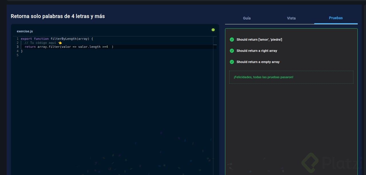 Completa el desafío con los conocimientos adquiridos e implementa el método filter() en tu solución.