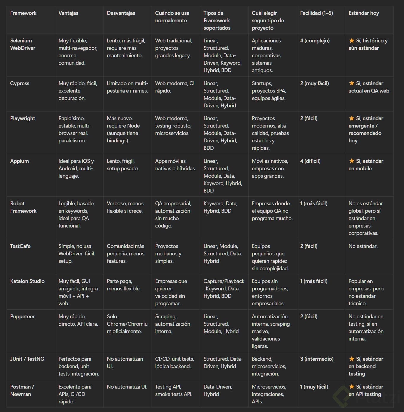 Tipos de framework de automatización