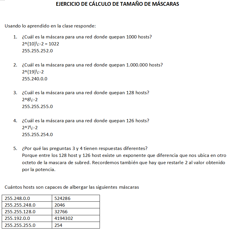 ¿Cómo calcular la máscara para un número determinado de hosts?