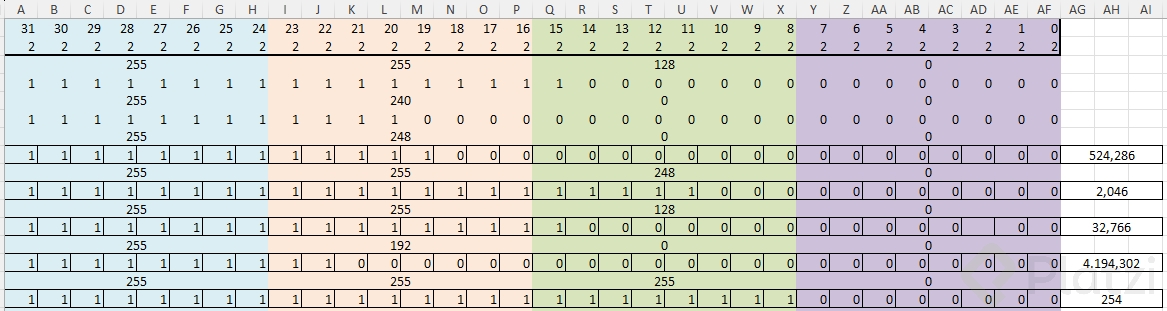 Los números binarios y las máscaras de red están estrechamente relacionados. Las máscaras de red indican cuántas máquinas puede tener una red específica. Vamos a usar Excel para visualizar y construir estas máscaras.