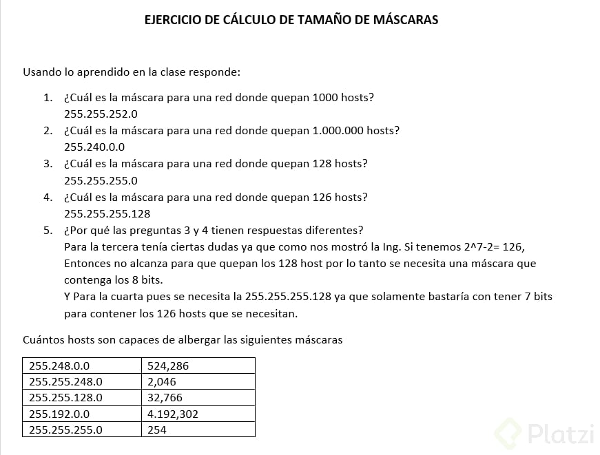 - Pista: Encuentra la potencia de dos más cercana a 500 y recuerda restar 2 para las direcciones de red y broadcast.