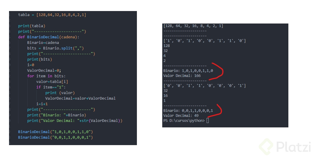 - La segunda posición en 1 corresponde a (2^4) o 16.
