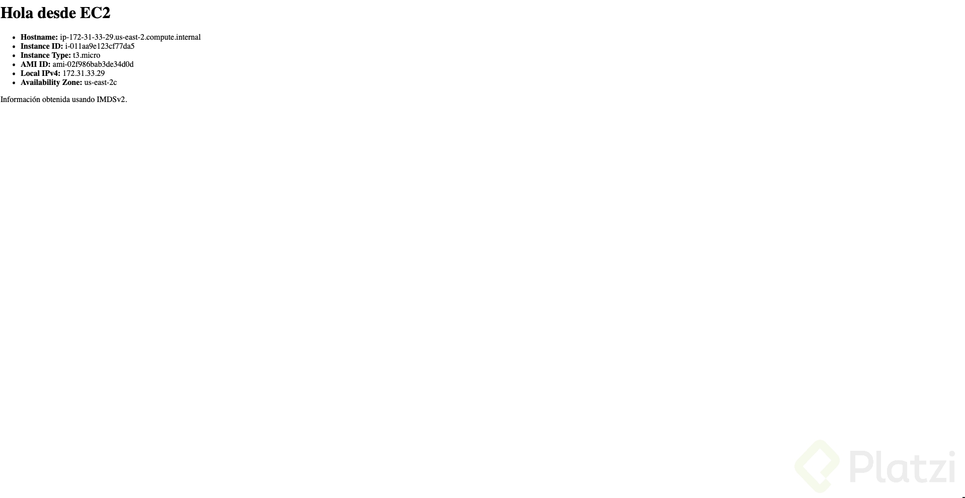 Como desafío adicional, identifica cómo podrías acceder y consultar metadatos internos de tu instancia EC2. Este ejercicio te ayudará a familiarizarte más con la administración y el monitoreo de instancias de AWS EC2, tema que te invitamos a explorar para afianzar tu aprendizaje y compartir resultados antes de nuestro próximo encuentro.