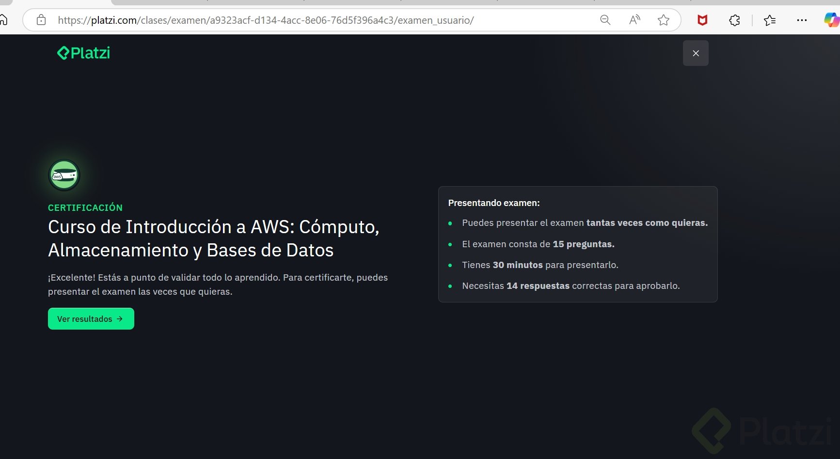 En este curso vimos los tipos de cómputo, almacenamiento y bases de datos en AWS. ¡Felicidades por completarlo! Recuerda tomar el examen y el Curso de Redes, Gobernanza y Machine Learning (cuando esté disponible).