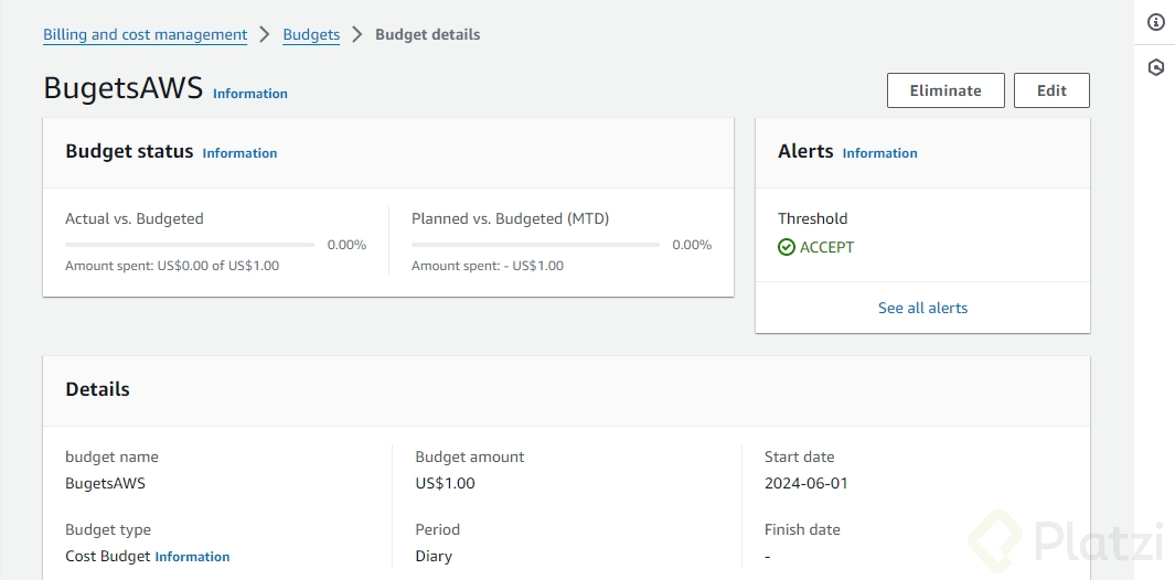 Configuración de Budget en AWS