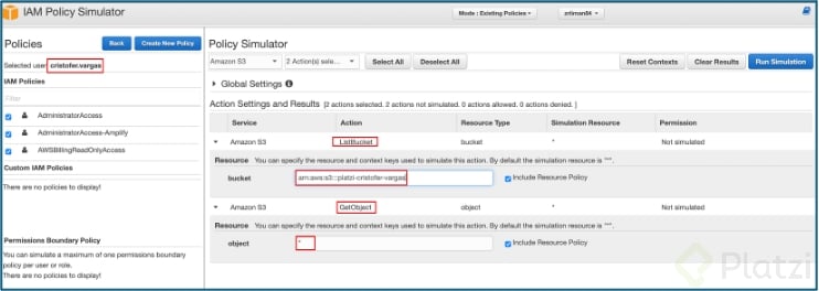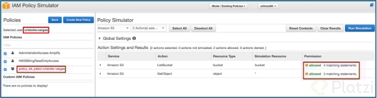 Valida la política con IAM Policy Simulator para asegurarte de que solo permite las acciones necesarias.