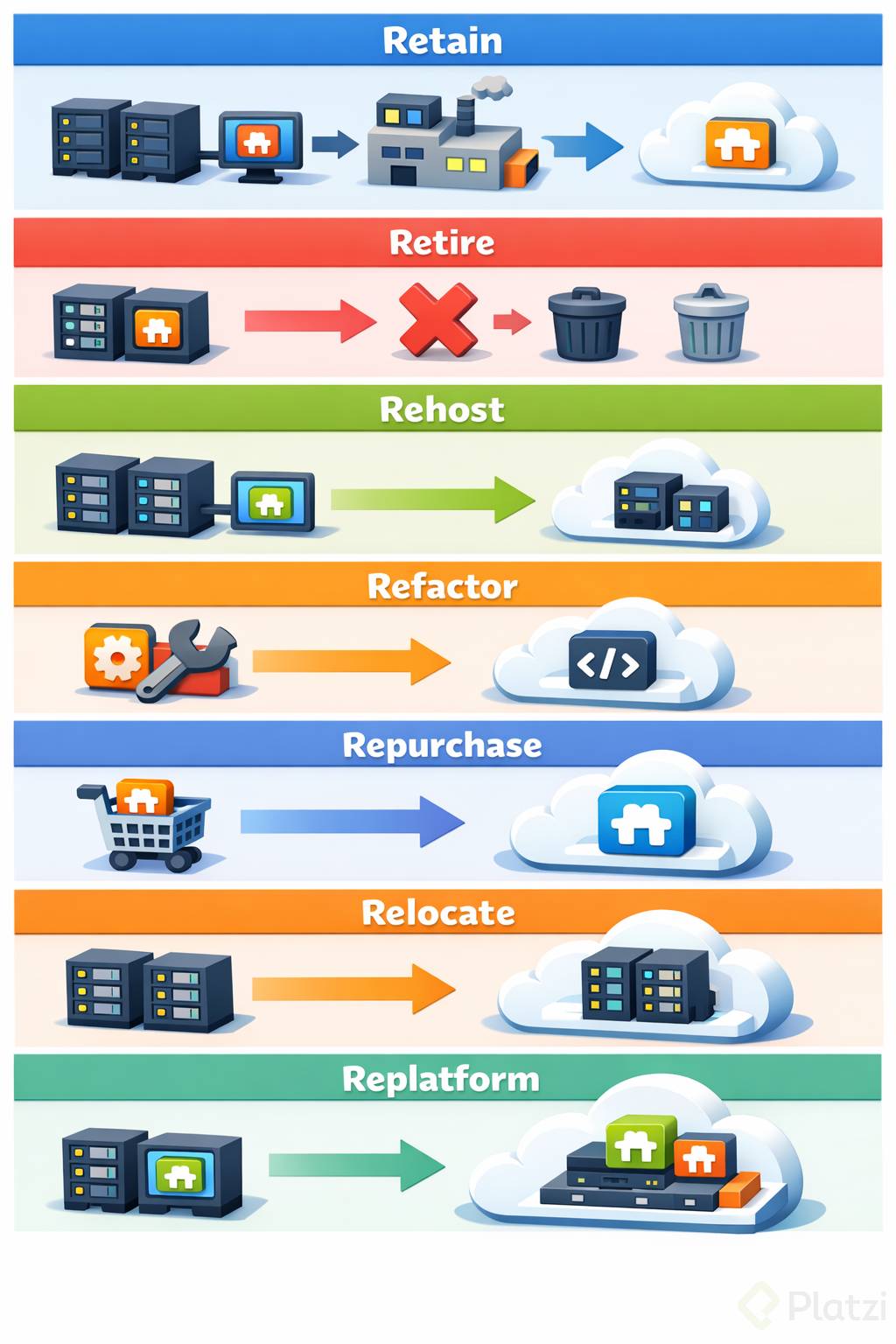 A continuación, te presento siete estrategias de migración a la nube, desde la más simple hasta las más complejas, y cómo pueden ajustarse a distintas necesidades empresariales.