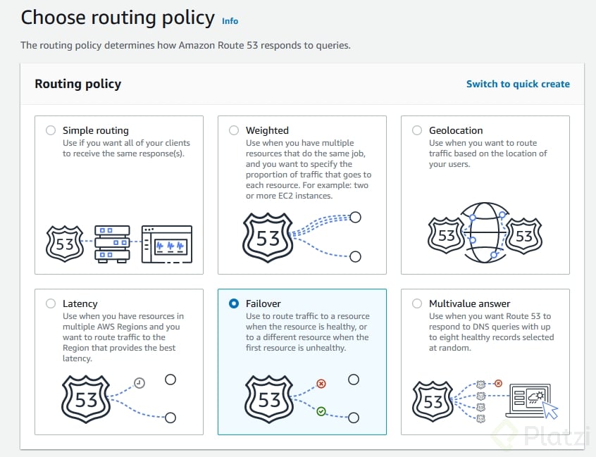 AWS Route 53 no es solo una herramienta de compra y transferencia de dominios, sino que también permite complejas configuraciones de enrutamiento. Con estas opciones, puedes definir cómo el tráfico es dirigido hacia tus aplicaciones, dependiendo de tus necesidades específicas.