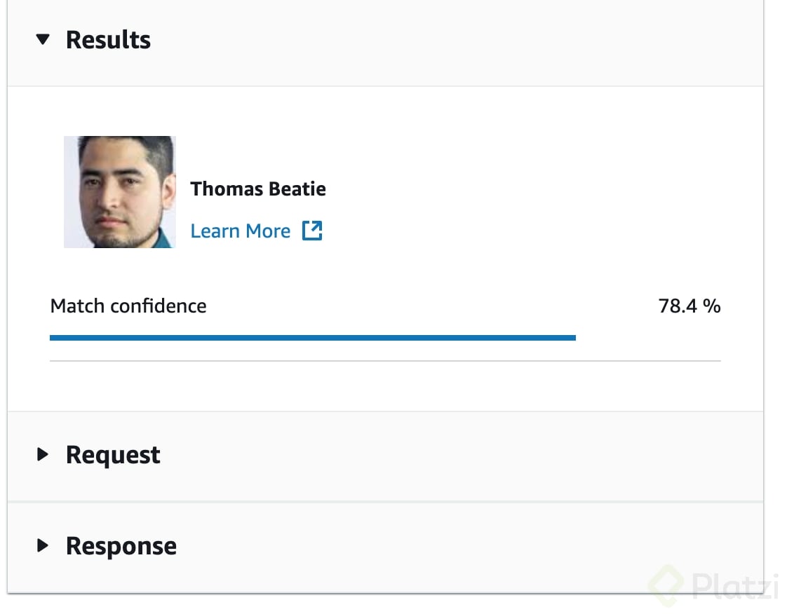 Cabe destacar que Rekognition también nos retorna un objeto Response, el cual contiene distintas características de la imagen, como la posición de los actores, e incluso un estimado de cuál sentimiento expresan sus caras.
