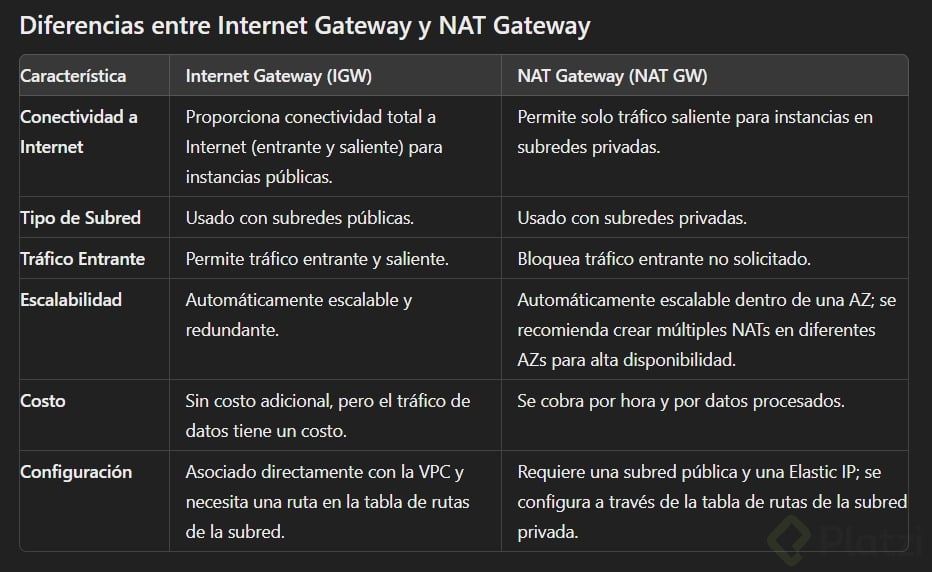 - Internet Gateway: permite que Internet pueda acceder a nuestra instancia de EC2