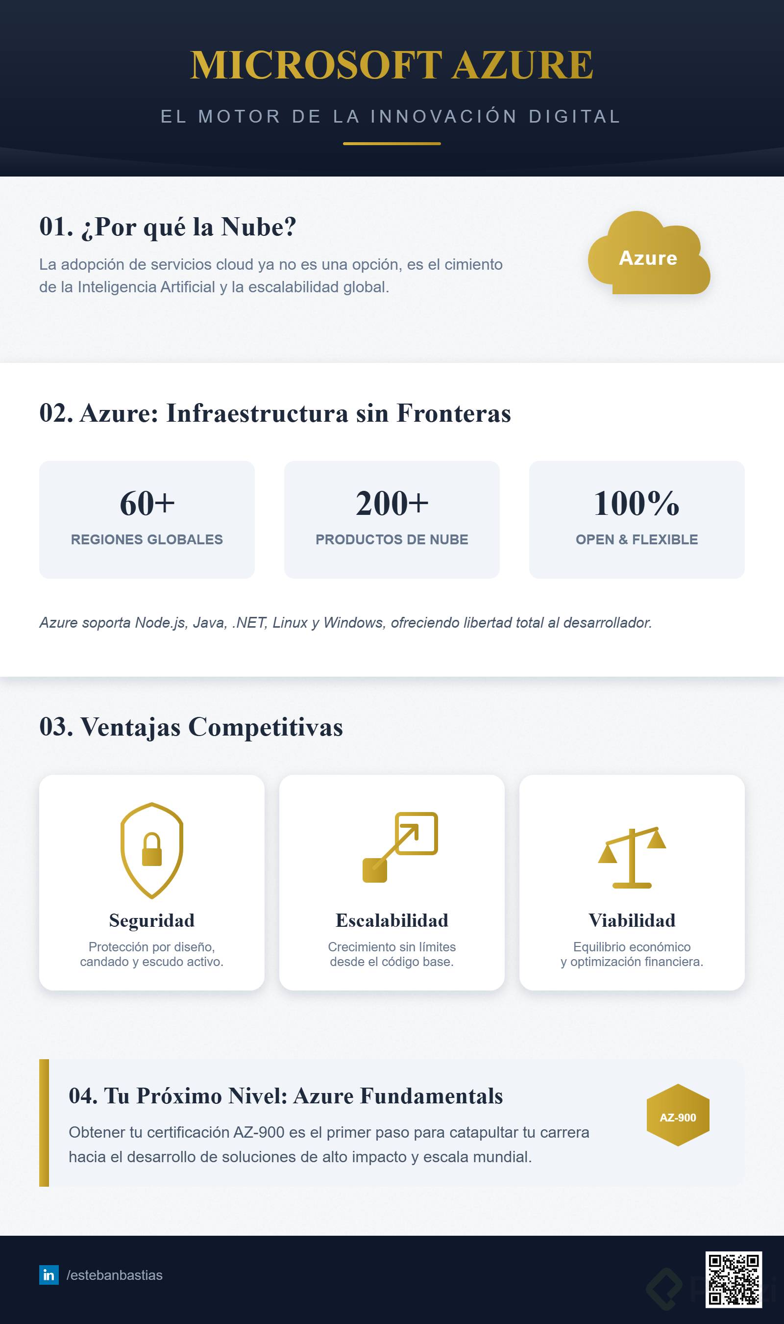 He acumulado doce años de experiencia trabajando en Microsoft y usando Azure en múltiples proyectos. Ahora quiero compartir ese conocimiento contigo para que puedas prepararte para la certificación de Azure Fundamentals. Superar esta certificación no solo elevará tu nivel profesional, sino que también te proporcionará las herramientas para desplegar soluciones en la nube de manera segura, escalable y económicamente viable.