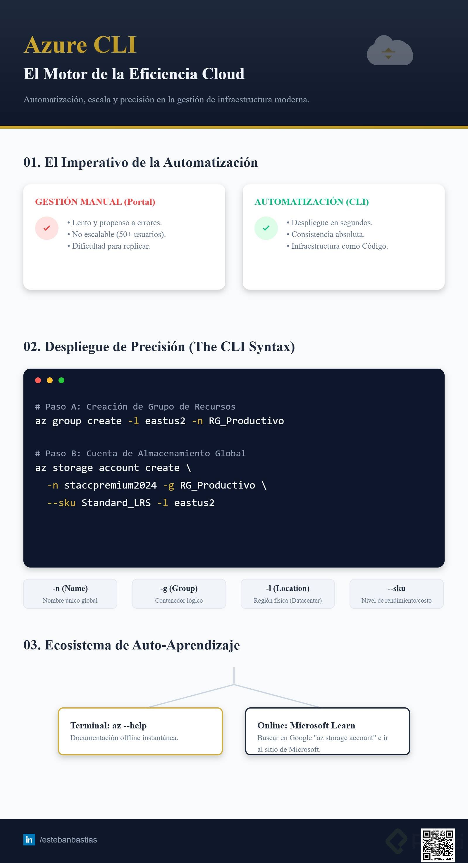 Estos casos hacen evidente que la gestión manual a través del portal o incluso mediante plantillas ARM puede convertirse en un verdadero dolor de cabeza cuando la escala aumenta. Es aquí donde la línea de comandos de Azure (AZ CLI) se convierte en nuestra aliada.