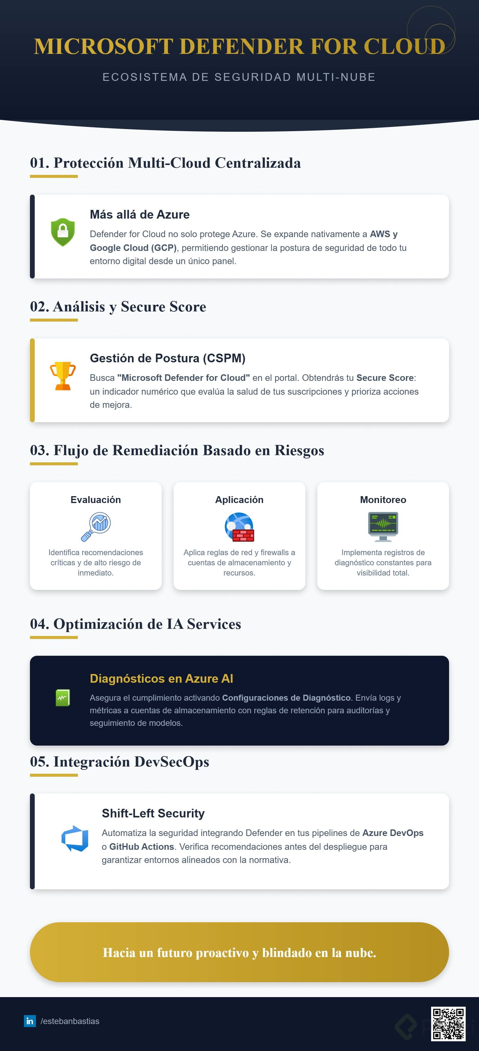 En resumen, adoptar Microsoft Defender no solo te proporciona tranquilidad, sino que también te dota de herramientas poderosas para mantener tus operaciones en la nube seguras, proactivas y bien gestionadas. Con la constante evolución de las amenazas, integrar soluciones robustas como estas será esencial para proteger tus activos digitales y avanzar hacia un futuro más seguro en la nube.