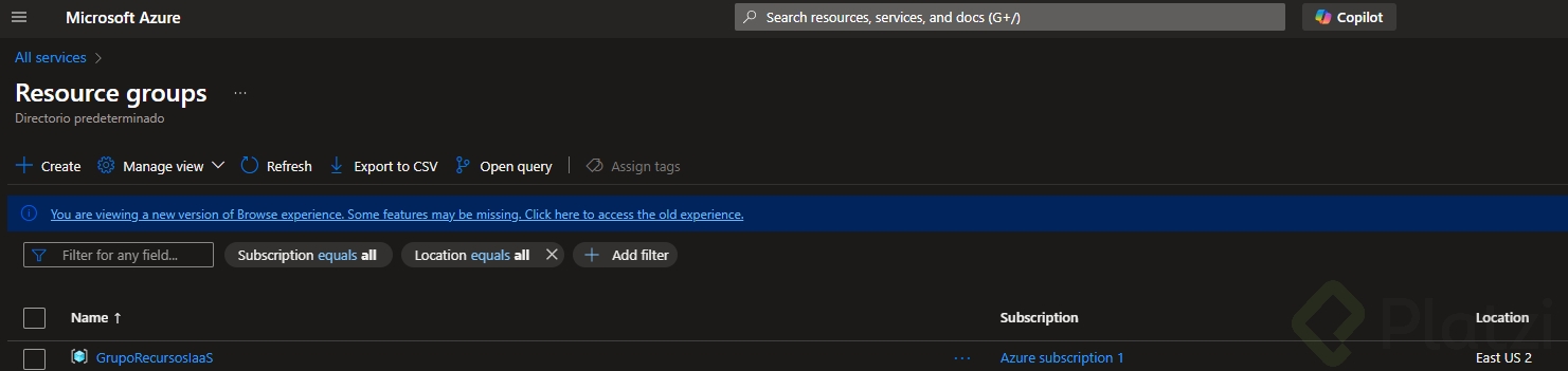 - Eliminar un grupo de recursos: al final de cada práctica, elimina grupos de recursos para liberar espacio y cumplir con el presupuesto de tu cuenta gratuita Azure.