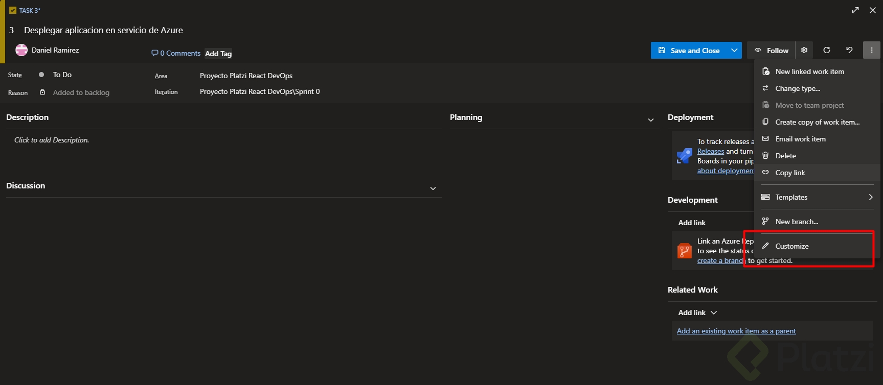 Más allá de simplemente crear tickets, Azure DevOps ofrece diversas opciones que permiten mejorar y personalizar la gestión de tareas.