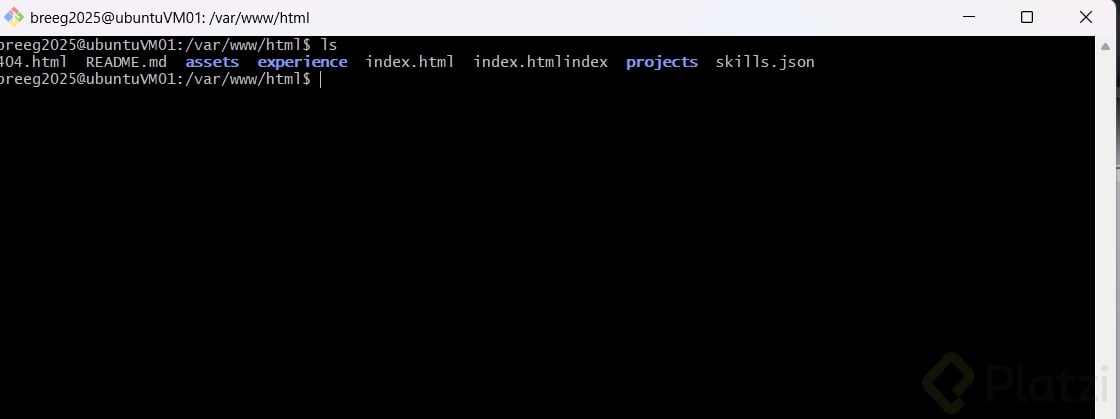 Recuerda que el archivo /var/www/html/index.html contiene el HTML que ven nuestros usuarios al entrar a nuestra página web, a la que por ahora solo podemos acceder usando la IP pública que nos asignó Azure, así que si editamos este archivo HTML va a cambiar el contenido que muestra la página web.