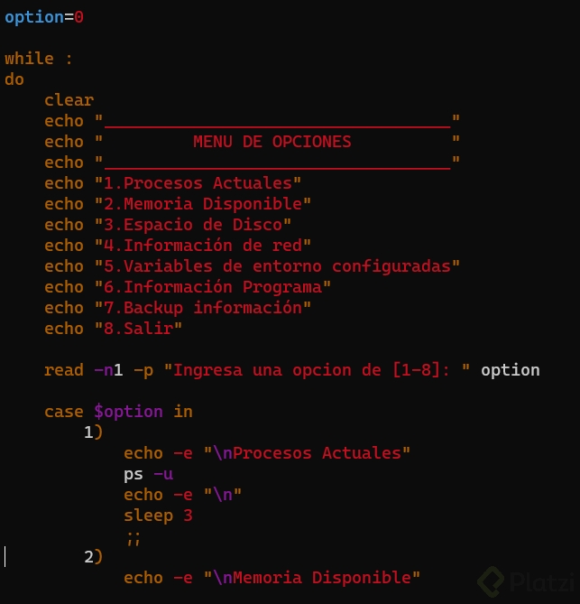 Posterior a esto vamos a recuperar la opción ingresada, validarla e imprimir la opción y el título de acuerdo a lo ingresado