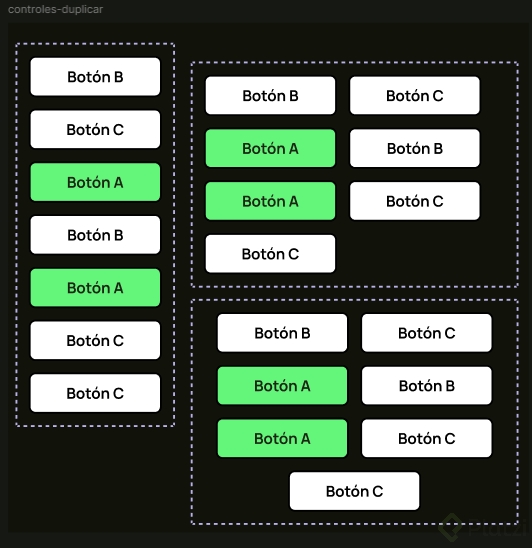 - Colapso vertical: Los botones se reorganizan en una columna cuando reduces el tamaño del contenedor.