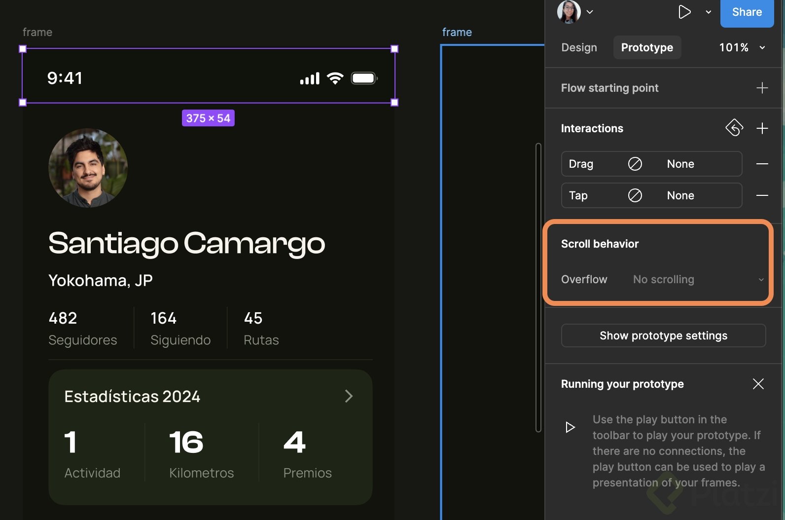 Asegúrate de que ciertos componentes, como la barra de estatus o el menú inferior, permanezcan fijos para mejorar la navegación y el realismo del prototipo.
