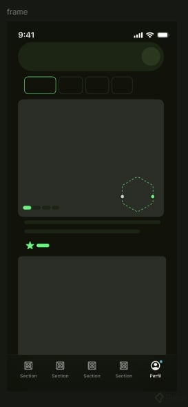 Comenzamos el proceso de diseño creando el borrador de una interfaz en el canvas de Figma, partiendo por la parte superior, con una barra exploradora. Para añadir elementos clave, tomamos decisiones de diseño tales como la disposición y el estilo de elementos, como:
