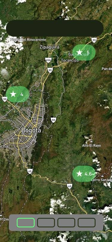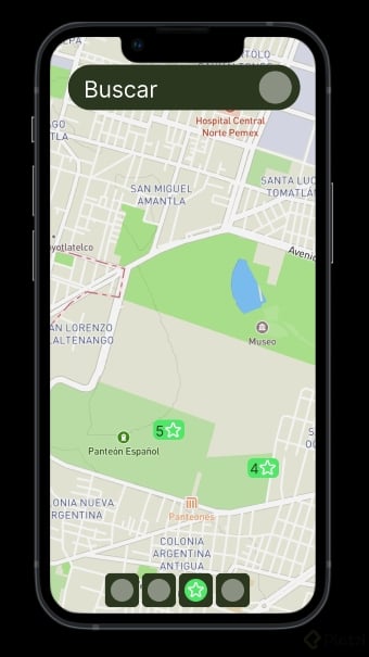 Barras de menú y navegación: Para indicar diferentes secciones de la aplicación, podemos usar rectángulos y círculos más pequeños como iconos representativos en la parte inferior de nuestra interfaz, cambiando de color para indicar la selección activa.