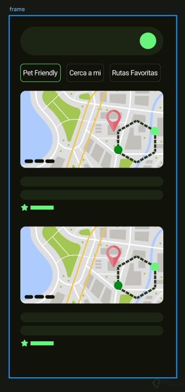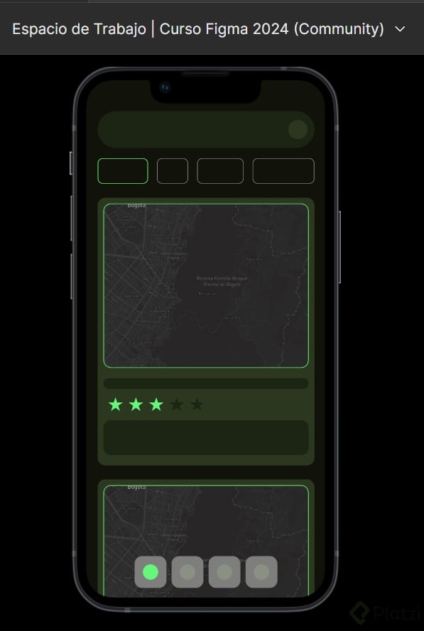 Explorar diferentes layouts: Figma ofrece la flexibilidad de experimentar con distintos diseños y componentes de interfaz. No temas probar varios enfoques, como tarjetas de tipo Tinder o mapas interactivos.