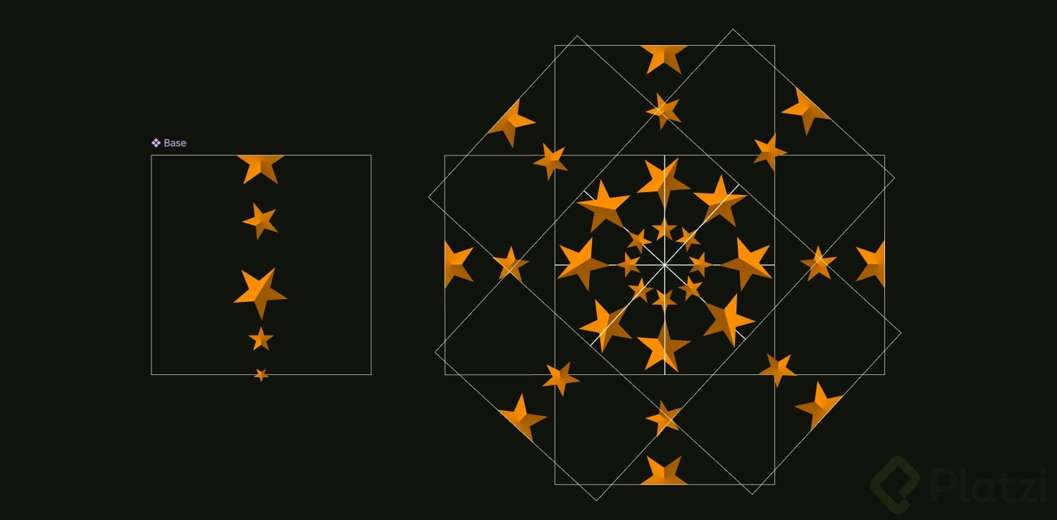 Ahora que tenemos la base, exploraremos cómo podemos utilizar copias de este componente con simetrías reflejadas para crear patrones complejos.