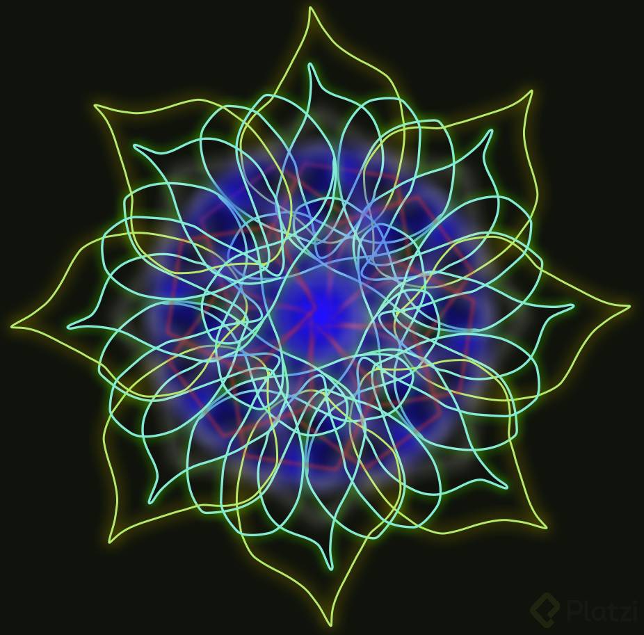 - Escoge un color como verde biche y empieza a dibujar desde el centro, aplicando la simetría a todo el diseño.