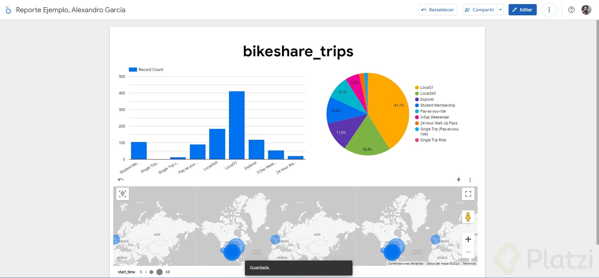 SELECT * FROM `bigquery-public-data.austin_bikeshare.bikeshare_trips` LIMIT 1000; -- Limitamos a 1000 para manejo de muestras - Haz clic en "run" para ejecutar la consulta y revisar los resultados.