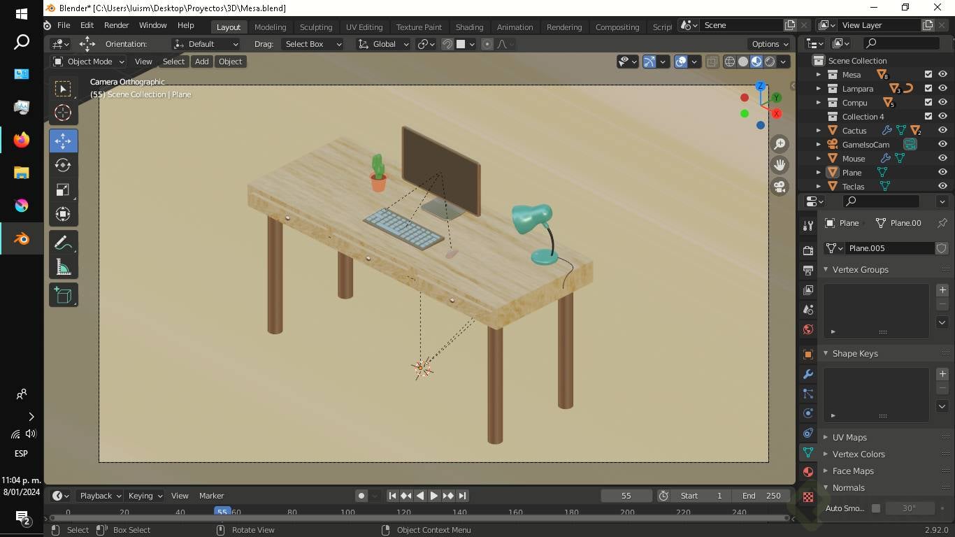 Modelado7¿Cómo se crea un proyecto?04:31 min8Modelado de la mesa11:29 min9Modelado de lámpara14:44 min10Modelado del cable de la lámpara05:36 min11Modelado de pantalla y soporte08:35 min12Modelado de teclado y mouse11:43 min13Modelado de matera y cactus15:35 min14Modelado de espinas del cactus03:30 min