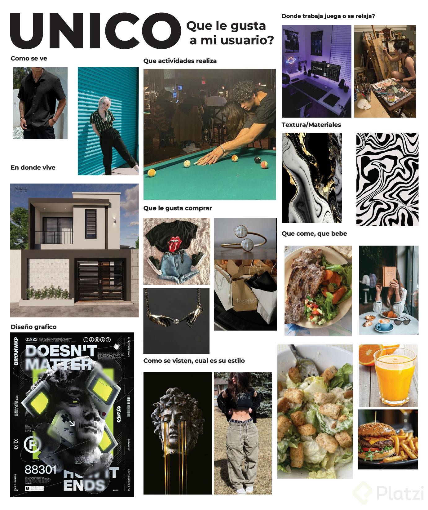 - Comportamientos: Detalla hábitos de consumo, preferencias y comportamientos online.