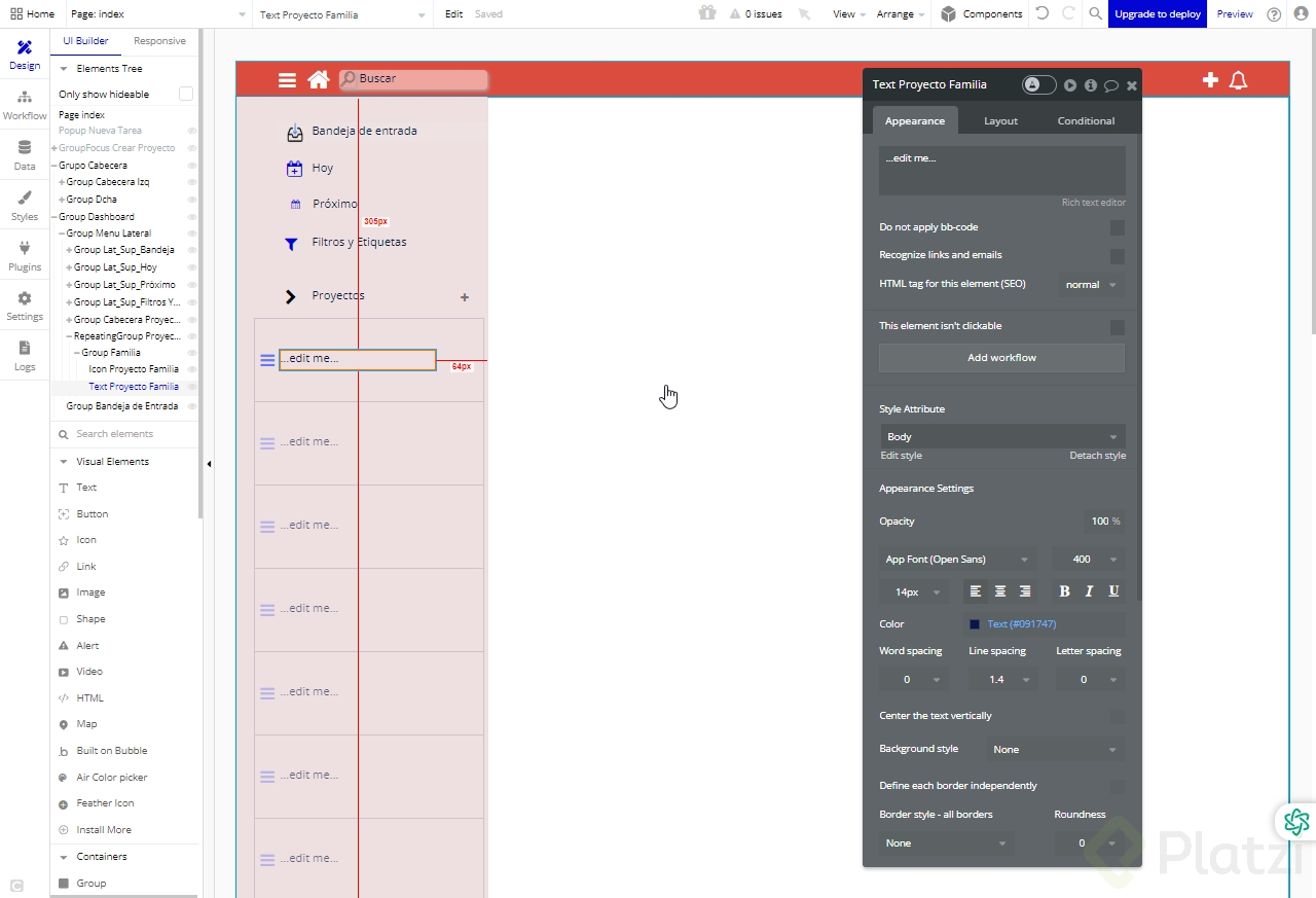 Creando tareas4Creando un formulario con Group Focus22:47 min5Plugins16:09 min6Creando tareas con el contenedor Popup15:08 min7Dando funcionalidades al Popup con selectores14:22 min8Asignando prioridades11:08 min9Asignando etiquetas14:40 min10Descubriendo los option sets02:18 min11Asignando prioridades con Option Sets08:41 min12Cambiando los colores de las prioridades02:40 min13Añadiendo tareas a tu base de datos10:11 min
