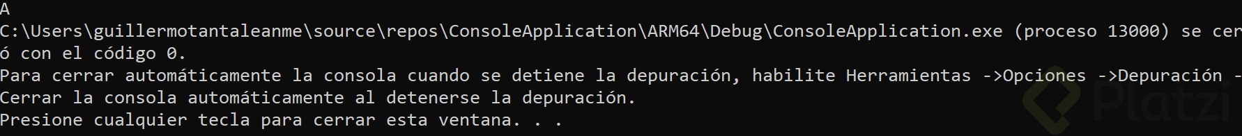 Al ejecutar esto, el sistema imprime el valor almacenado en la dirección a la cual apunta nuestro puntero. En este caso, sería el carácter 'a'.