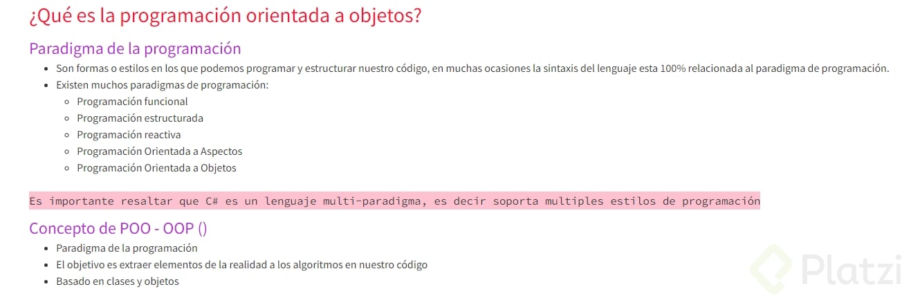 C-Sharp (C#) es un lenguaje multiparadigma, lo que significa que ofrece soporte para múltiples estilos de programación. En la práctica, eso implica que los desarrolladores pueden combinar diferentes paradigmas al estructurar su código. Sin embargo, la programación orientada a objetos es fundamental en este lenguaje. Muchas librerías, frameworks y plantillas en .NET, utilizadas para crear proyectos de escritorio y web, están basadas en POO.