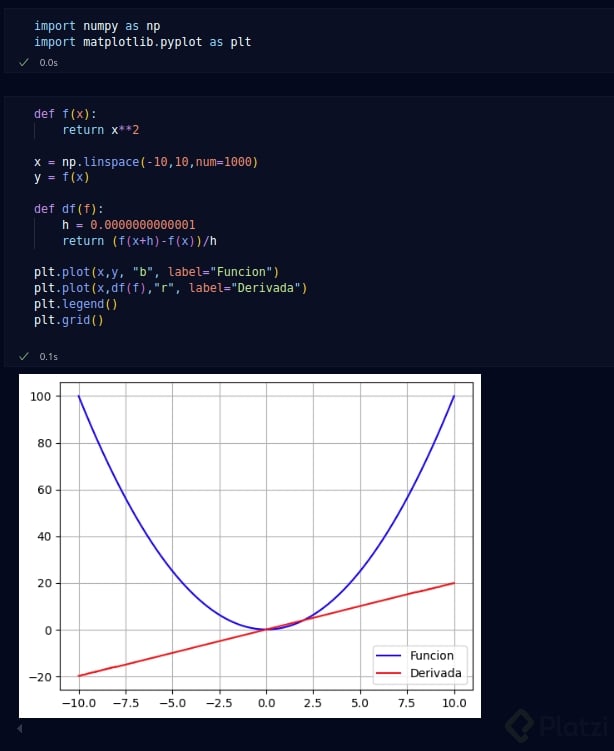 En ciencia de datos nos interesa llevar los conceptos matemáticos como la derivada a una computadora. En Google Colab llevaremos a cabo la implementación y visualización de las derivadas.
