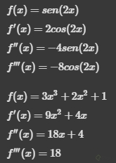 - Cuarta derivada: al derivar una vez más, obtenemos ( 24 ). Este proceso puede continuarse según sea necesario.