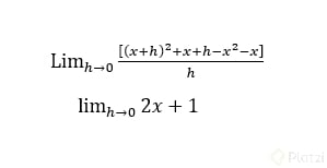 - Factorizar la "h" común y simplificar, resultando finalmente en: [\lim_{h \to 0}(2x + h)]