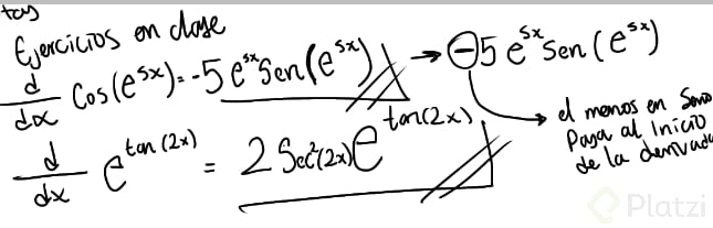 - Se inicia derivando Euler elevado a una función, recordando que la derivada de (e^u) es (e^u) por la derivada del exponente.
