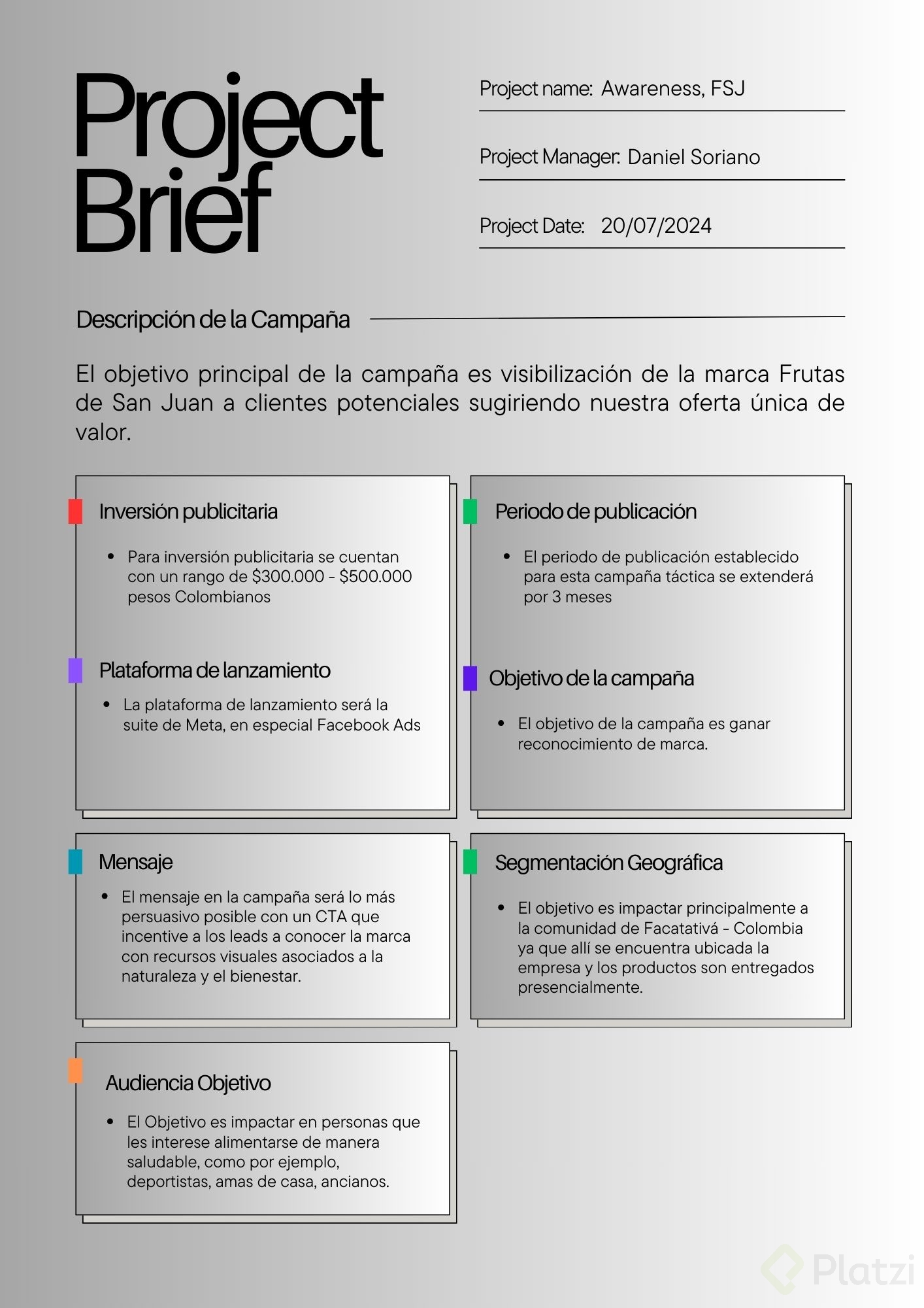 📌 Ahora es momento de hacer tu primera actividad: crea tu brief publicitario con base en el formato que te hemos mostrado y comparte tu propuesta en los comentarios de esta clase.