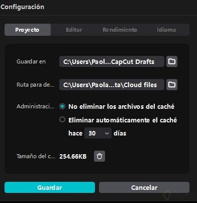 CapCut cuenta con dos tipos de menú el principal y el de los clips: