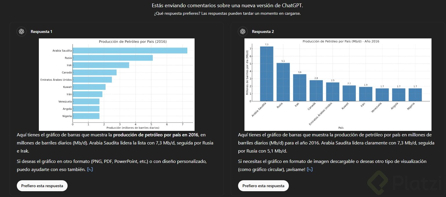 - La capacidad de generar gráficos u otras tareas complejas puede no estar siempre disponible, ya que estas funciones requieren un alto poder de cómputo que fluctúa con el uso.