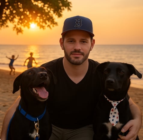 - Incluye elementos concretos: niños jugando, perro entrando desde la derecha.