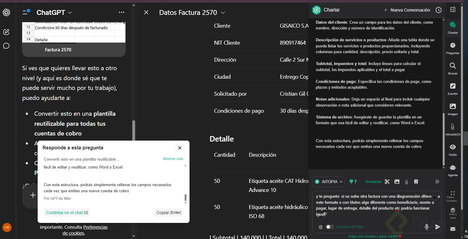 Impulsa tu escritura con ChatGPT usando canvas o lienzo. Convierte la respuesta en un documento vivo que puedes coeditar, versionar y exportar. Ideal para un plan de negocios, una campaña de marketing, un correo o un artículo web. Más control, menos copia y pega, y un flujo claro para iterar.