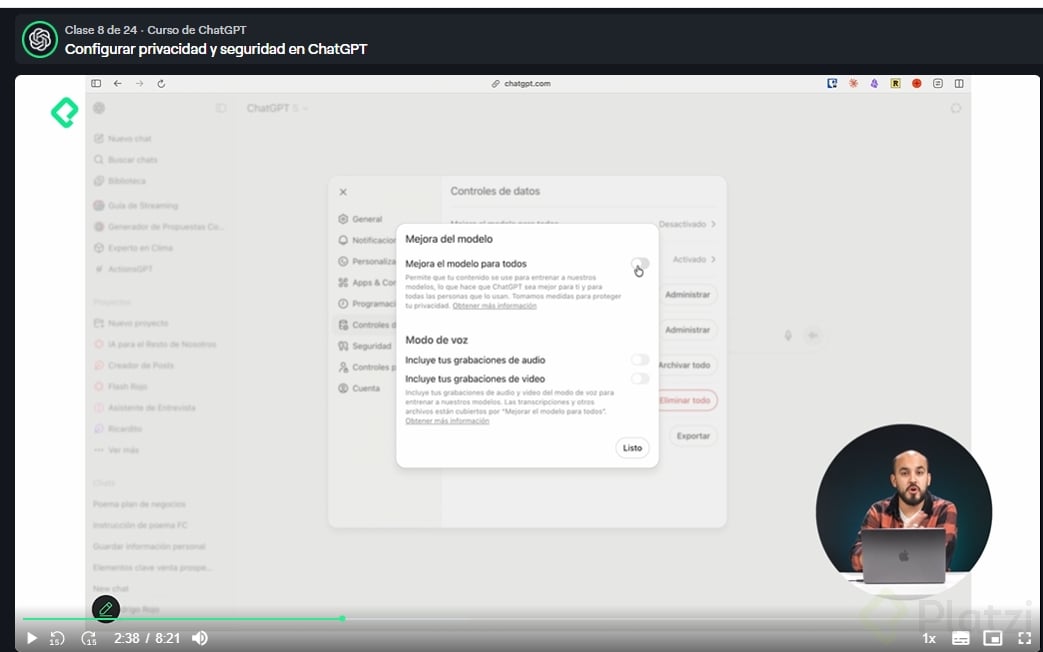 Configurar privacidad y seguridad en ChatGPT