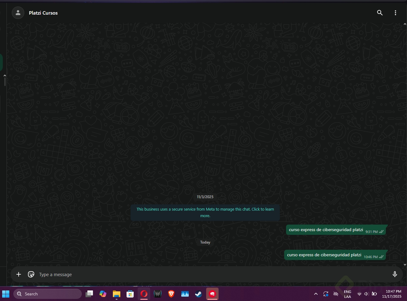 Clase 1 de 3 • Curso Gratis de Ciberseguridad: Simulador Práctico en WhatsApp