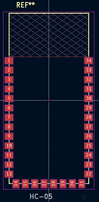 Este reto consiste en crear una nueva librería y diseñar en KiCAD la huella para el modulo Bluetooth HC-05 o el que hallas seleccionado para nuestro proyecto final.