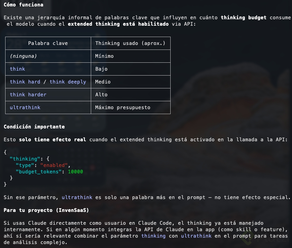 - Pensamiento extendido en Claude Code: Think, Think deeply y Ultrathink.